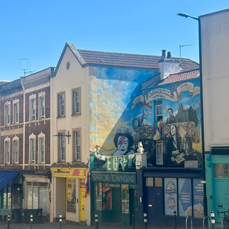 Banksy!: A friend recommended this site to help guide our way through some of Banksy's work in Bristol. Some were a bit difficult to find, but Ash managed to find the three she'd set out to see: The Girl with the Pierced Eardrum, Well-hung Lover, and Queen Ziggy (you have to look up for this last one!).